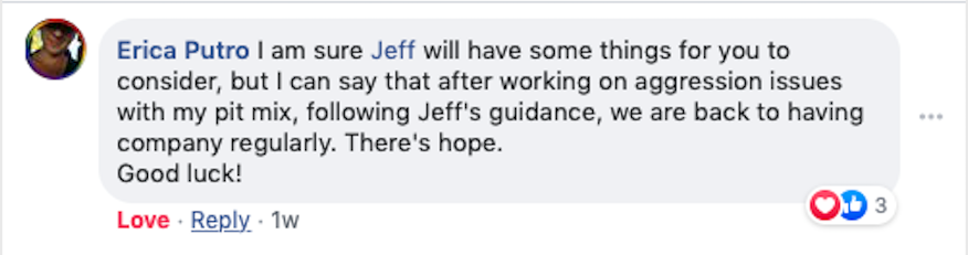 If you do the work Jeff tells you to do you will see results ! Jeff is very knowledgeable and you can tell he has a passion for what he does. From basic commands to aggressiveness, he can help!